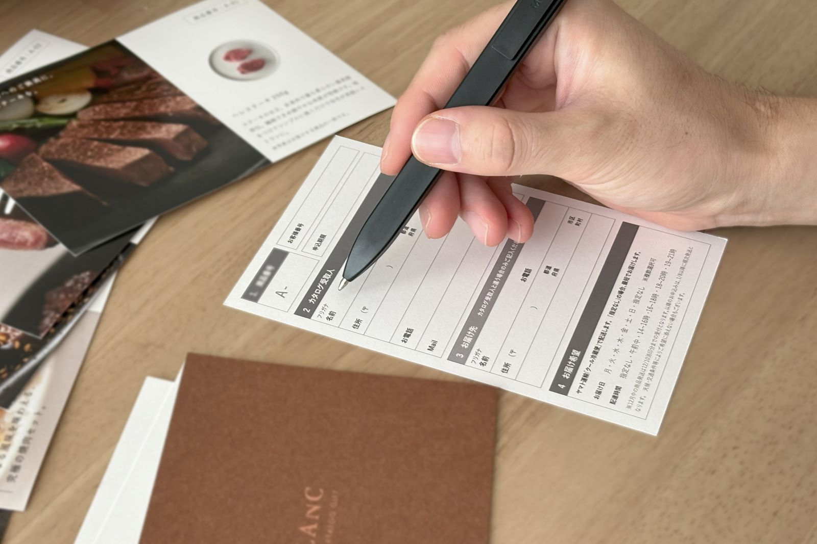申込方法は、同封の専用ハガキにお選びいただいた商品と必要事項を記入の上、投函いただくのみです。シンプルなお申込み方法の為、世代を問わず簡単にお申込みいただけます。