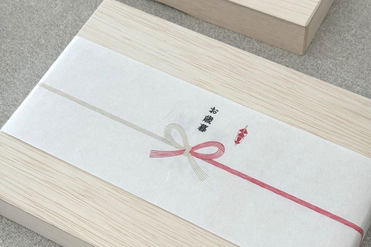 オリジナル熨斗をご用意しています。木箱に調和する和紙を使用し、特別な贈り物にふさわしい上品な仕上がりです。