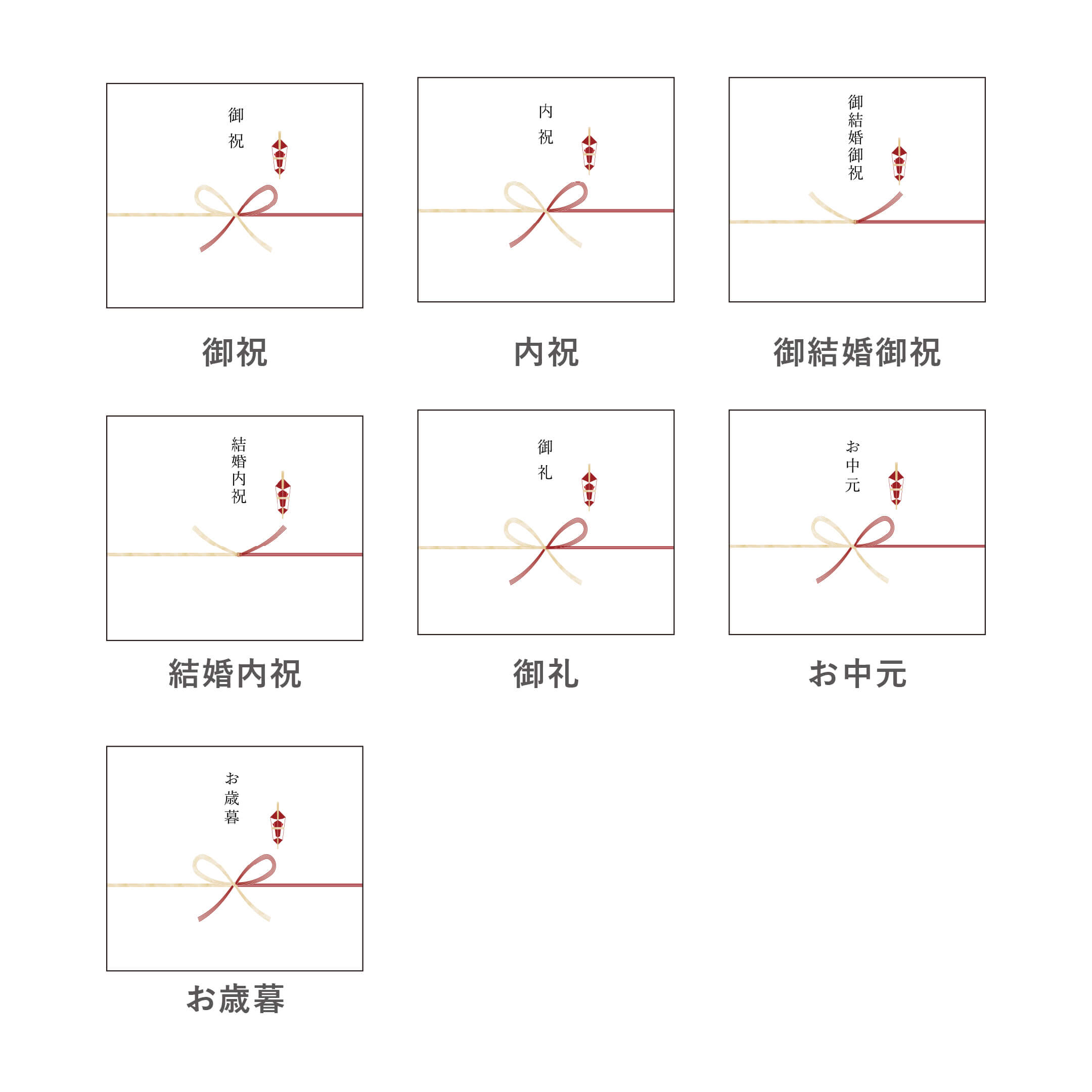 用途に合わせた熨斗をお選びいただけます。その他の表書きをご希望の場合は、お手数ですがメールにてお問い合わせください。